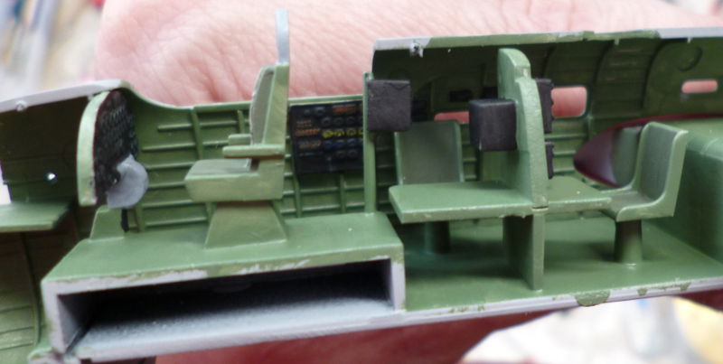 Some filing and more comments later I had persuaded the fuselage to fit, and primed the cockpit as