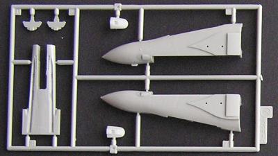 The kit, as said, is a new tooling Hasegawa, which means half a million parts. At first glance, this looks like an excellent kit, and given the price and obvious amount of work that went into it's design, it had better be. Unfortunately, closer inspection reveals some unnecessary problems. First, and admittedly one of my pet peeves, is the rear cockpit. There is a blanking plate provided to fair over the right console, but not for the left, which should have one as well. Looks like Fijimi's F-4K/M kits are still the only ones to get it right, even after twenty years on the market. The consoles should also be at an angle, but the kit has them almost level; again, the aging Fujimi does a better job. For some reason, just about every part has locator pins associated with it, but there are none for the sensor housing under the nose. I just know this is going to be a hassle. Now, I realise that these are details, and that not buying aftermarket replacements for each and every interior bit is apparently for amateurs, but that doesn't mean they shouldn't get it right. I also find that Hasegawa have been extremely stingy when it comes to the things under wings. The Phantom is completely unarmed, not even the Sparrow missiles are included with the kit, and there are no centerline or outboard wing pylons provided. They expect you to buy their separate weapons sets to arm the plane, which is cheap, but can be dealt with, but I haven't a clue what to do about the pylons, other than steal them from, once again, the Fujimi kits. Ripping them off the fuel tanks won't work, as the tanks had integrated pylons that were slightly different from the normal pylons. A measly four small pieces of plastic would have made this kit so much nicer, eight if you include the Sparrows. I'll forgive the absence of Sidewinders, as these came is too many variants. And they were so close...